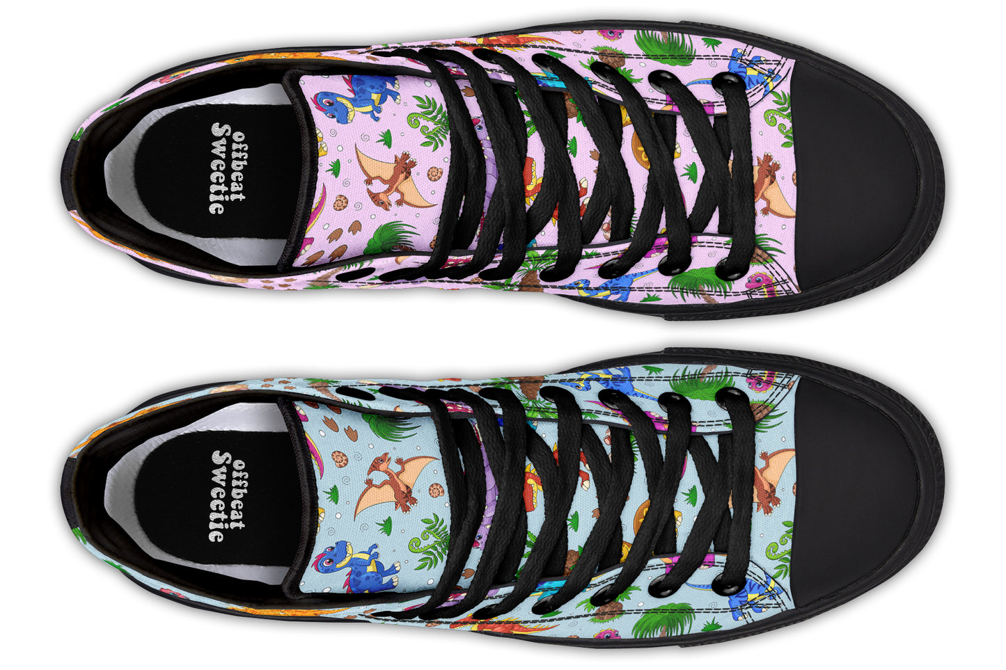 Pink And Blue Mismatched Baby Dinos High Tops - Offbeat Sweetie