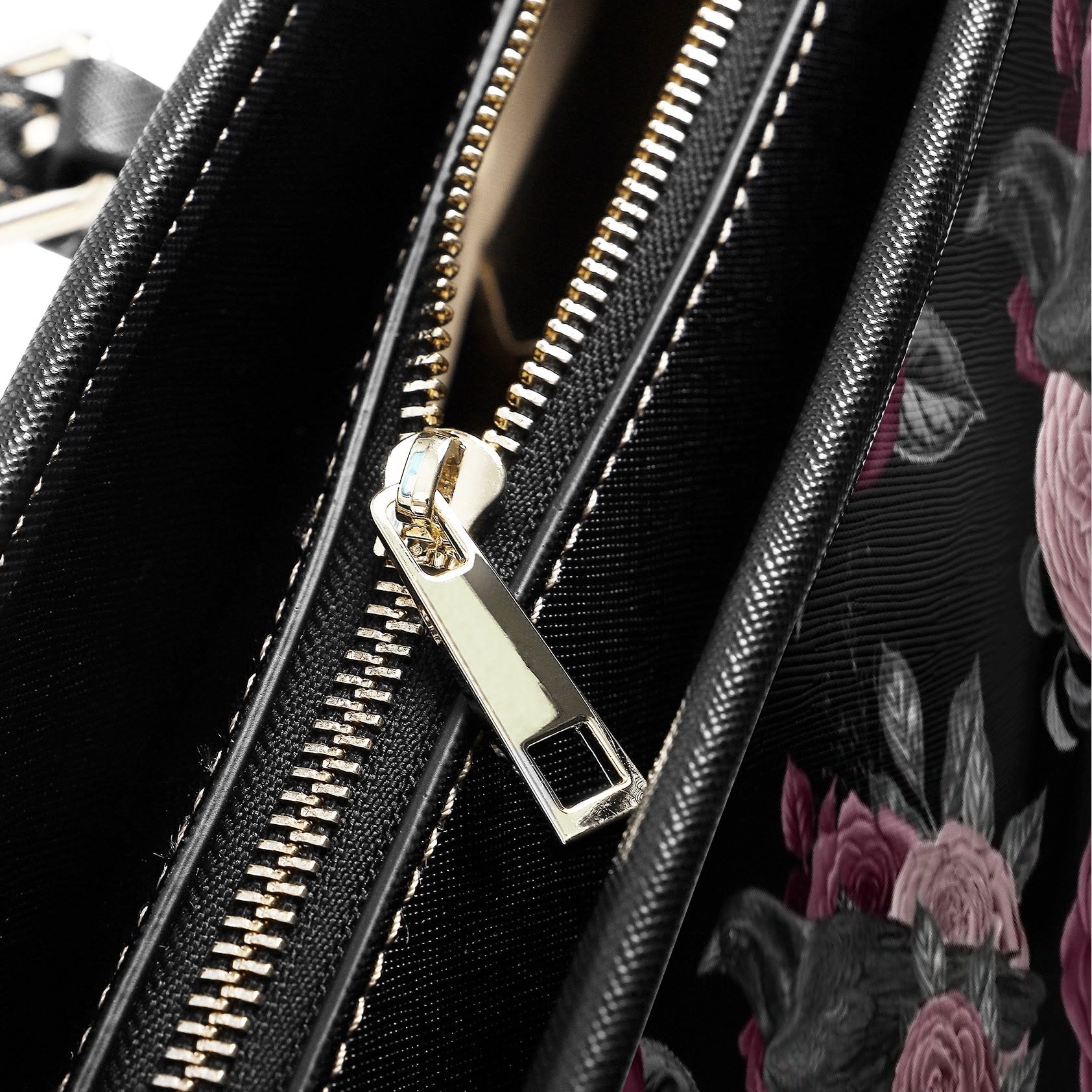 • One inner zipper pocket on back wall and two slip pockets